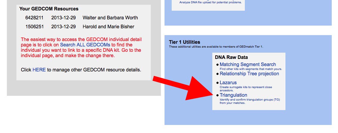 To use GEDMATCH with ADSA you must be a Tier 1 GEDMATCH member. That means you must have, at some time, donated at least $10 to GEDMATCH. The GEDMATCH upload process for DNAgedcom.com depends on two Tier 1 tools: Matching Segment Search and Triangulation which you cannot access unless you are a Tier 1 member. And, of course, you must have loaded your raw data to GEDMATCH previously so that it has been tokenized and batch processing is completed.
