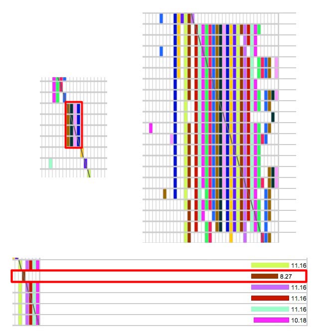 The wider you go, the easier it is to see the segments spread out across the length of the chromosome. However, if you go too wide, it may be difficult to print the page without having the browser chop things off at the right margin. The default here (500 pixels) seems to work pretty well in most cases for me (although I might have to print in landscape when I have a lot of segments on one chromosome). Once in a while you may want to make the segment graph smaller if you have a chromosome with over 50 segments on it since the ICW matrix will tend to push the table out beyond the right margin for printing.